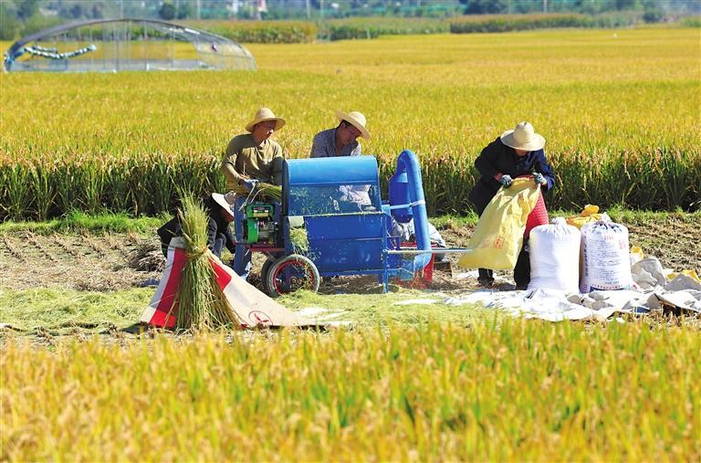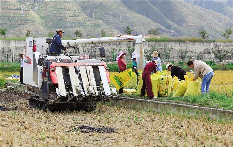 寒露时节,武都区角弓镇的3000亩水稻进入收获季,当地村民抢抓农时收割,田间地头一派忙碌的丰收景象。近年来,角弓镇充分利用白龙江沿岸独特光热、水土、气候等资源,积极探索农业发展新模式,在传统水稻种植的基础上,引进优质高产水稻品种,并采用科学的种植管理技术,提高了水稻的抗病性和产量,实现了农业增效、农民增收。 陇南日报记者 冉创昌 摄影报道