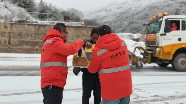 除雪保畅的一线战场上,公路人不仅是冰雪“清道夫”,更是司乘人员的“暖心人”。1月3日武都公路段除雪保畅队伍在国道G345线米仓山路段开展除雪作业时,发现一辆半挂货车停靠在安全区域,驾驶员站在车边来回踱步、神色凝重。养护人员主动上前询问情况,得知该驾驶员常年跑长途运输,此次途经本地恰逢降雪天气,因担心路面湿滑结冰引发安全事故,不敢贸然启动车辆继续行驶。了解情况后,工作人员第一时间安抚驾驶员情绪,并从车中拿出自备的核桃饼递给他:“跑长途辛苦,吃点先垫垫肚子,我们刚对这段路进行了除雪作业,路面结冰已经清理,慢慢开没问题。”司乘人员再三表示感谢后,驾驶车辆平稳驶离。这样的暖心场景每年都在武都公路段管养的各条公路上不断上演,武都公路人用细致入微的服务,让冰冷的冰雪天充满温情,生动诠释着“服务为民、保障畅通”的责任担当。