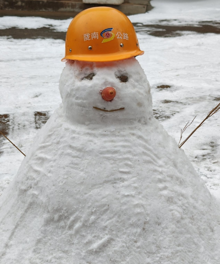 经过连续奋战,各条受阻公路陆续恢复安全畅通。趁着吃饭休息的短暂间隙,满身风雪与疲惫的公路养护者,在班站院子里自发拿起工具堆起雪人。大家分工协作,滚雪团、塑身形、做装饰,并为雪人戴上带有公路标志的安全帽,不一会儿,一个憨态可掬的雪人便呈现眼前。大家纷纷拿出手机给雪人拍照,有的发给家里人,有的分享给朋友。短暂的欢乐时光舒缓了连日作战的疲惫,更凝聚起持续守护通途的磅礴力量,这个特殊的“公路守护者”也成了班站里最亮眼的风景。憨态可掬的雪人,不仅定格了公路人们除雪保畅的辛劳瞬间,更彰显了他们“以路为家、护路为民”的责任担当。雪人的背后,是公路人放弃团圆的无私奉献,是顶风冒雪的坚韧不拔,是为民服务的初心使命。