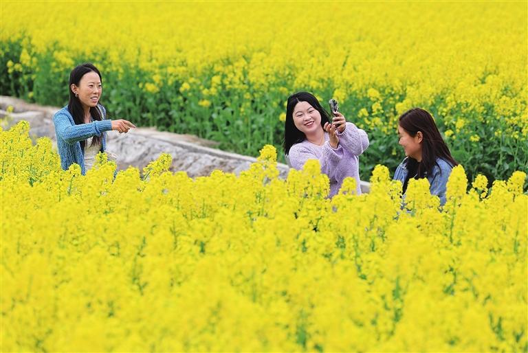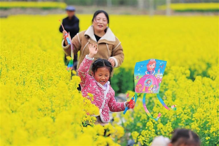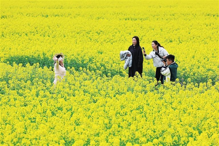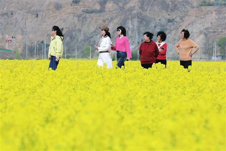 近日,白龙江河谷地带的油菜花进入盛放期,吸引众多市民前来踏青。金黄色的花海绵延起伏,游客或漫步田埂,或驻足拍照,孩子们奔跑嬉戏,笑声不断。“满目金色,空气里都是花香,太治愈了!”游客们举起手机,纷纷记录下这醉人春色。